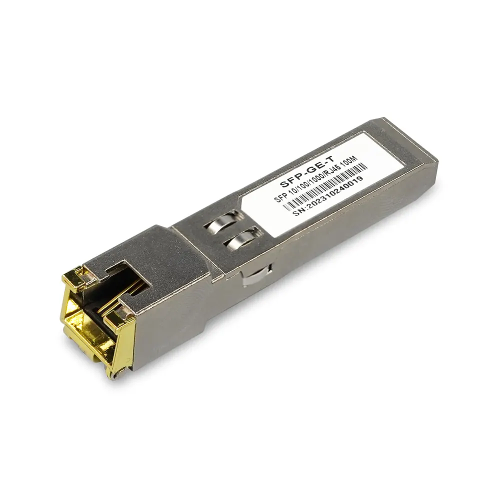 Dipper Optics’ SFP to RJ45 converter is a high-performance RJ45 SFP module designed for Gigabit Ethernet applications. This SFP module to RJ45 supports 1000BASE-T standards, enabling data transmission up to 100 meters over Cat-5 unshielded twisted-pair (UTP) cable. With a hot-pluggable SFP footprint and RoHS compliance, this RJ45 SFP transceiver is ideal for high-speed network connections.